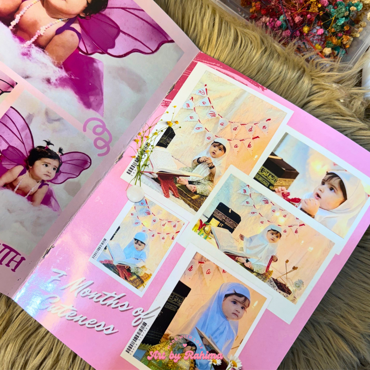 Choose between 8 pages (4 pages front and back) or 12 pages (6 pages front and back – ). Add your photos, text, and stories to create a personalised keepsake.