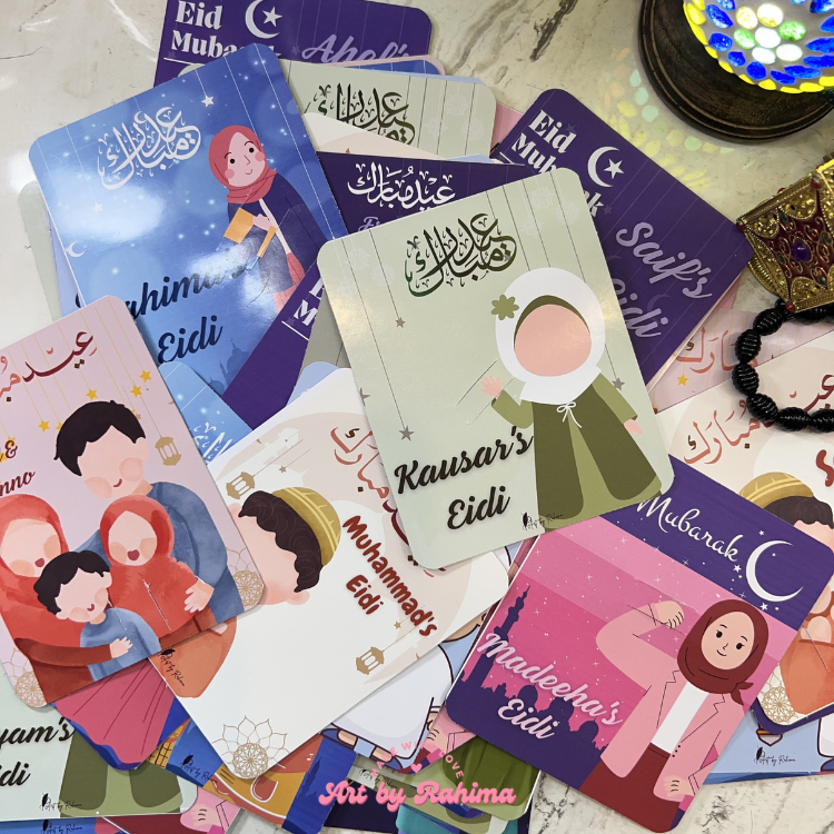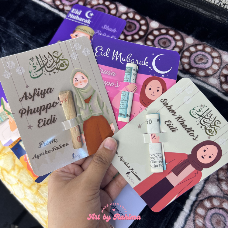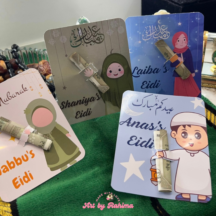These Eidi Cards are perfect for Eid gifting, school friends, family gatherings, and festive celebrations. Thoughtful, elegant, and personalised — they make Eidi giving more joyful and meaningful.