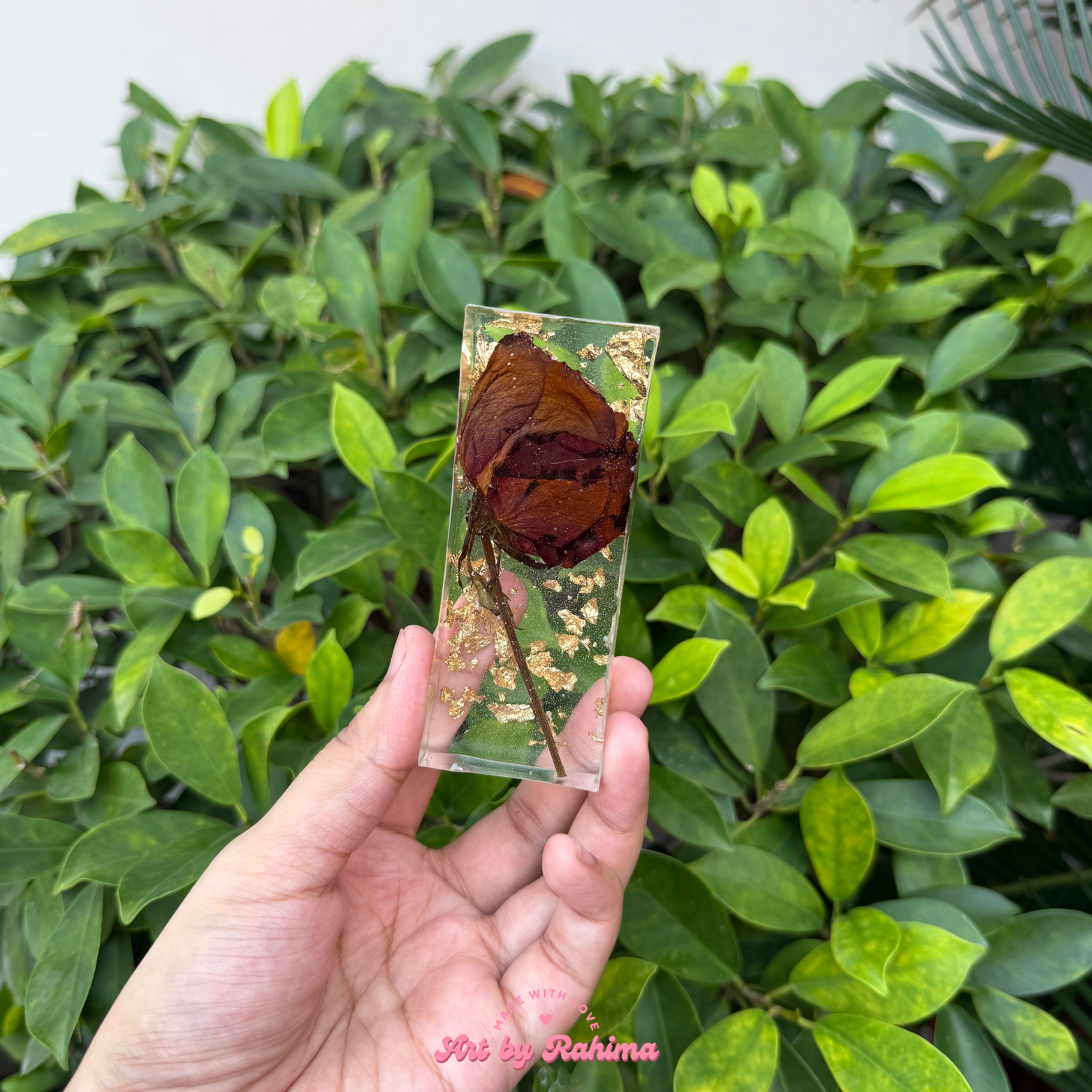 At Art by Rahima, every cube is handmade with care, detail, and love. With our Resin Rose Keepsake, your special flower is transformed into a timeless treasure you can hold onto forever.