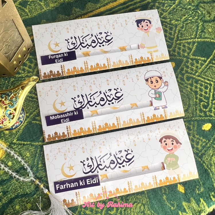 Add a creative and joyful touch to your Eid gifting with our beautifully designed Slider Eidi Cards. These personalised Eid money cards come with a unique sliding slot that makes gifting Eidi more interactive and exciting, especially for children.