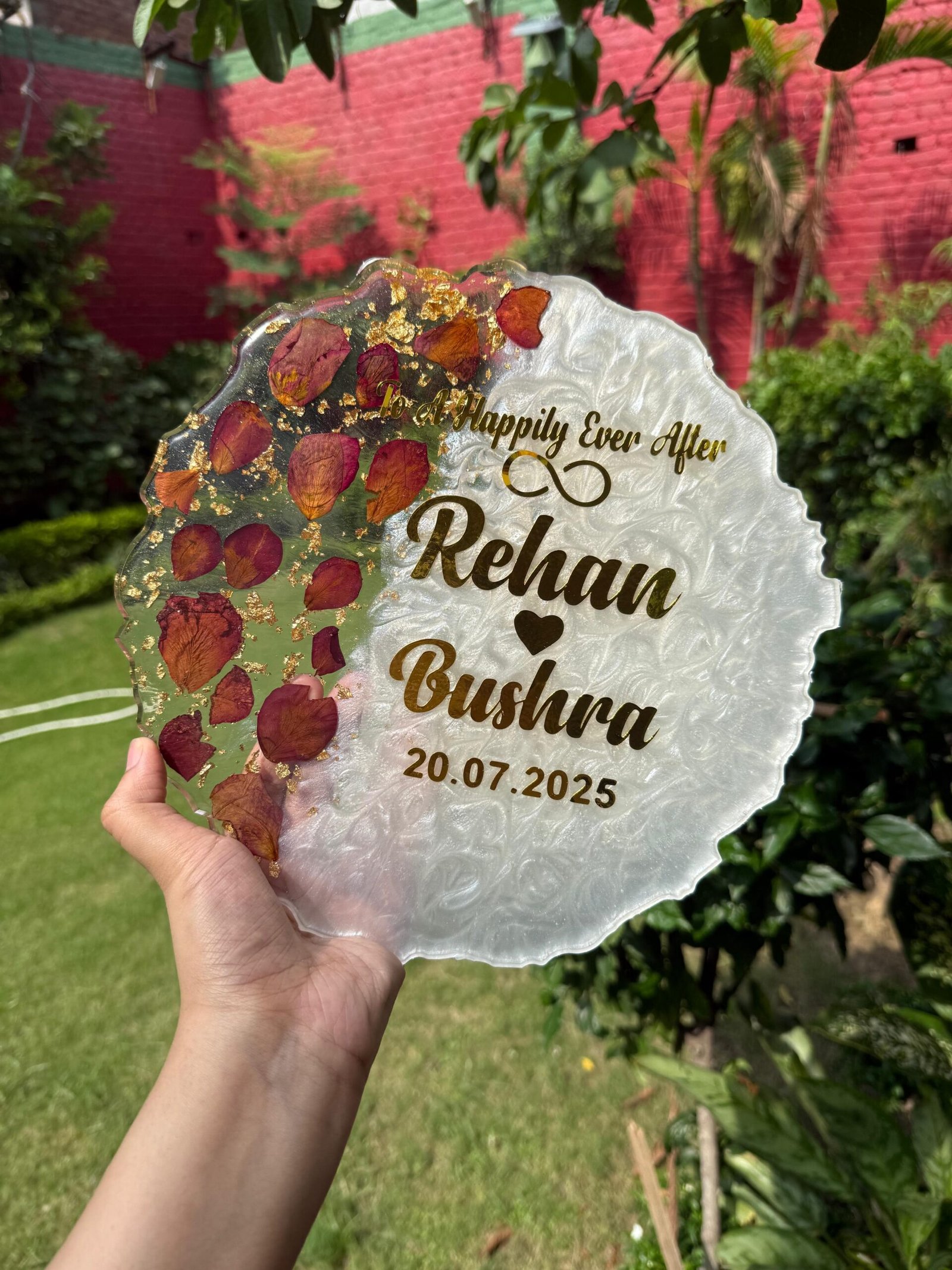 At Art by Rahima, we believe every moment deserves to be remembered beautifully. Our resin designs are handmade with care and creativity, preserving your special memories forever.